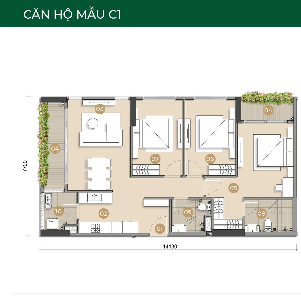 - 3 tháp căn hộ cao 20 tầng + 1 tầng hầm