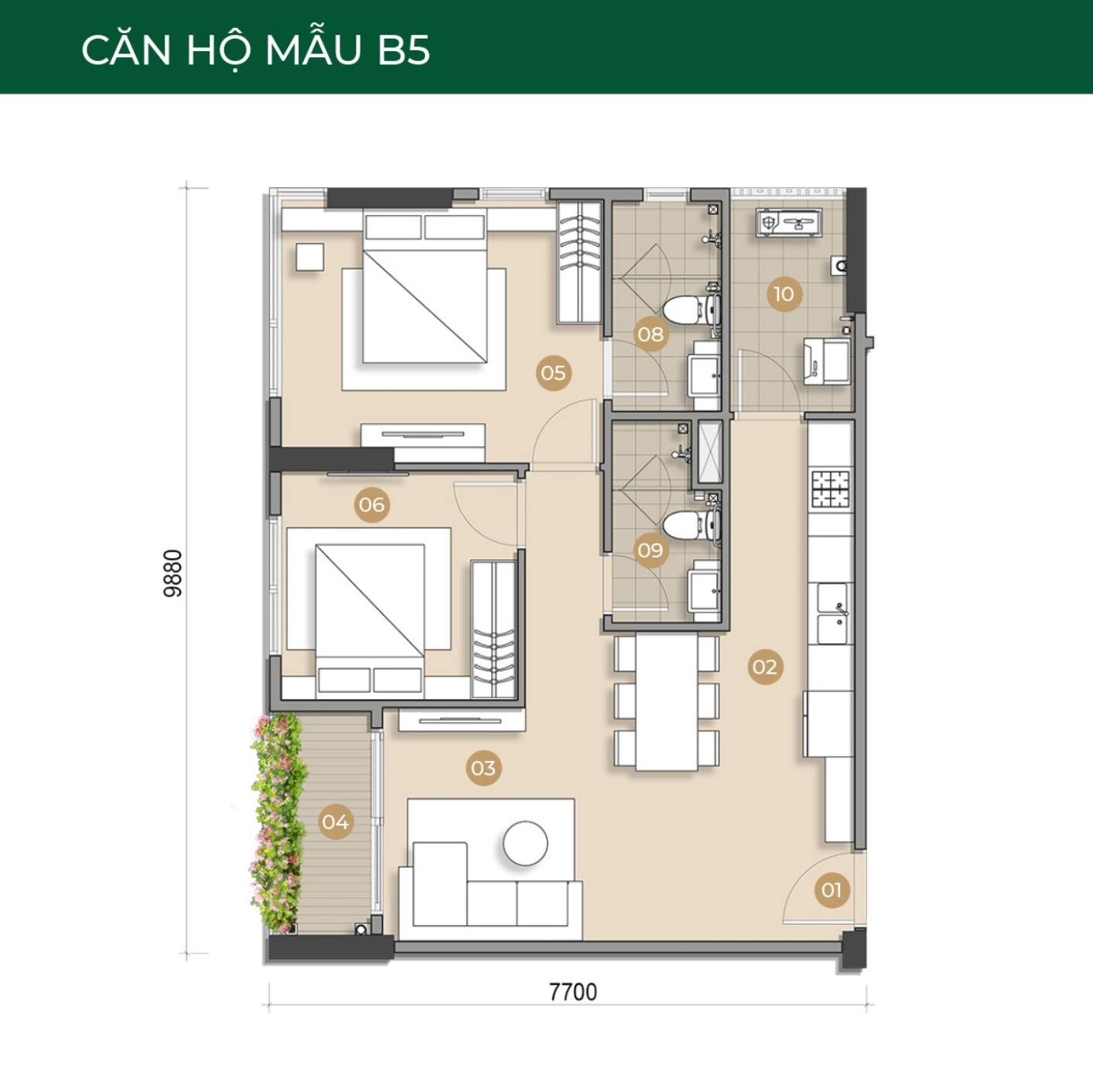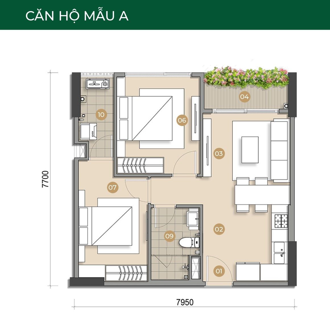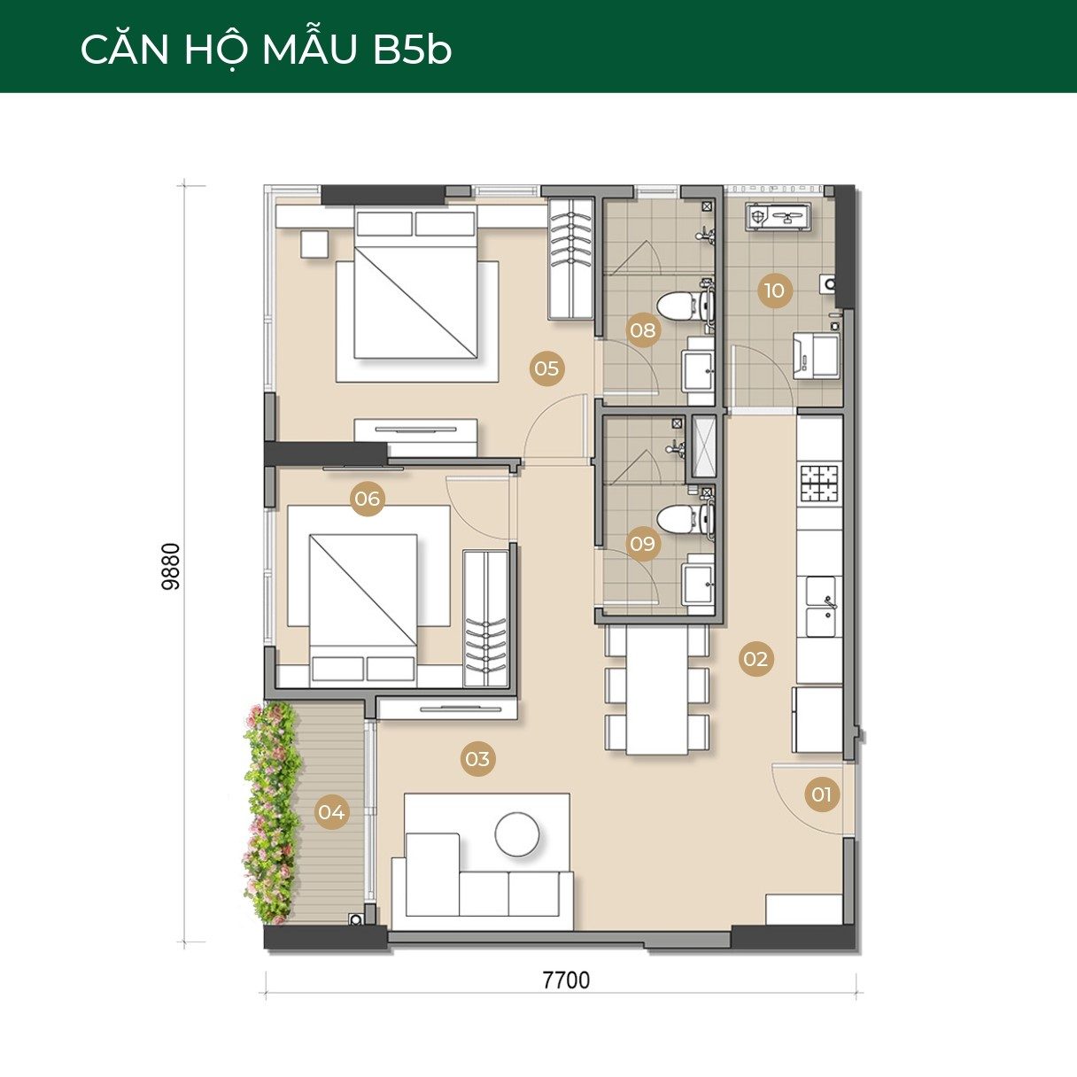 - 817 căn hộ 2-3 phòng ngủ (diện tích 59-106m2)
