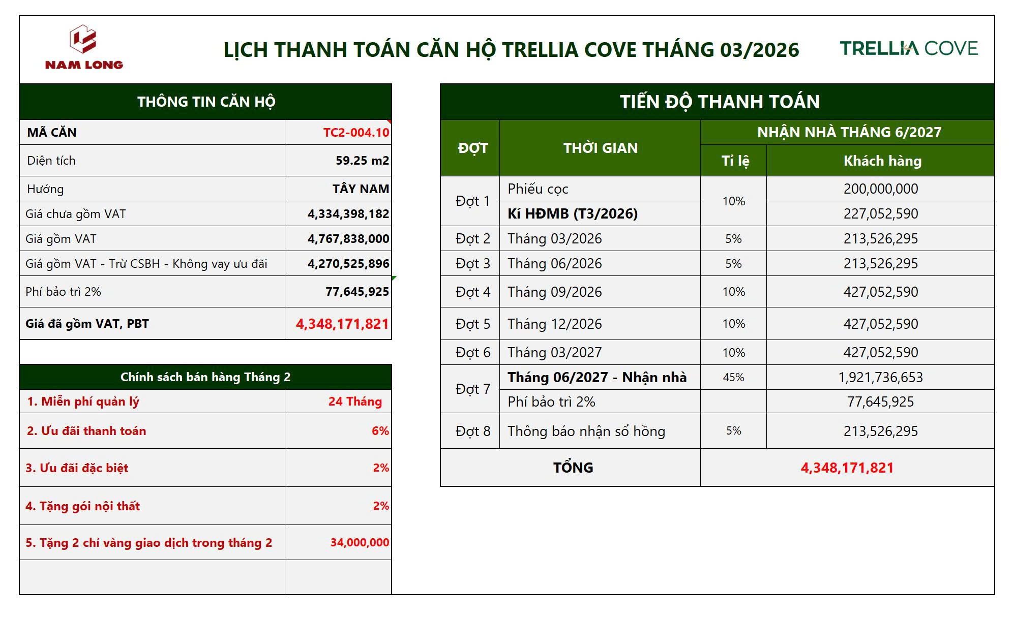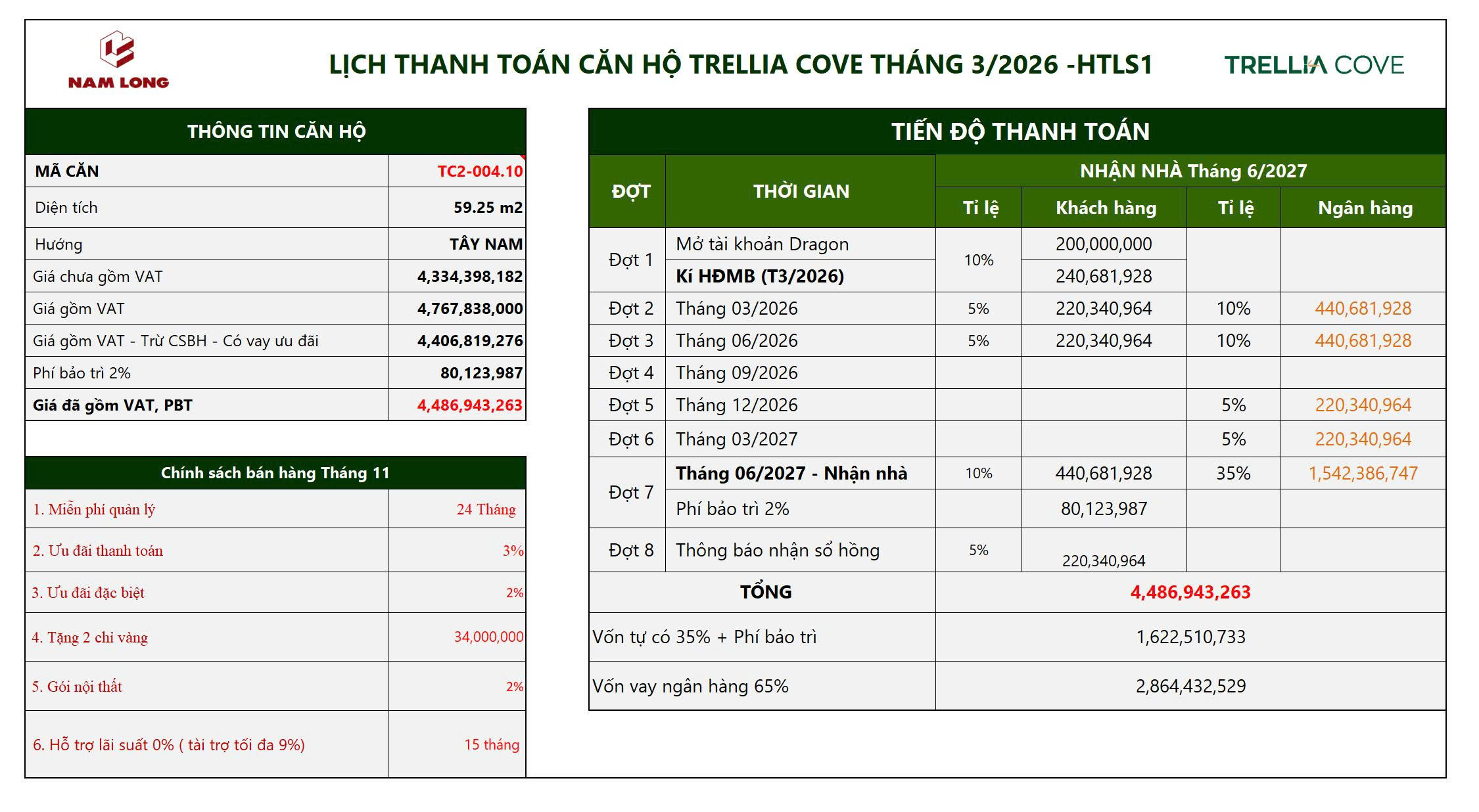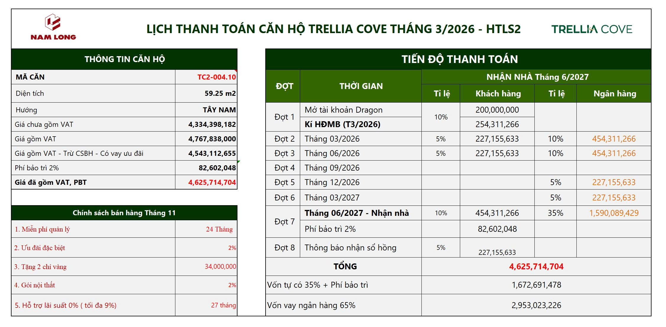 Bảng tính thanh toán CHUẨN căn hộ 2PN 1WC BAN CÔNGBảng tính Thanh toán NHANH 1 căn 2PN 1WC BAN CÔNG ( Số lương giới hạn chỉ 20 suất đầu tiên )Bảng tính Thanh toán NHANH 2 căn 2PN 1WC BAN CÔNG ( Số lượng giới hạn chỉ áp dụng 20 căn đầu tiên)Bảng tính Thanh toán HỖ TRỢ LÃI SUẤT 0%/NĂM ( Thời gian áp dụng 15 tháng )Bảng tính Thanh toán HỖ TRỢ LÃI SUẤT 0%/NĂM (Thời gian áp dụng 27 tháng)