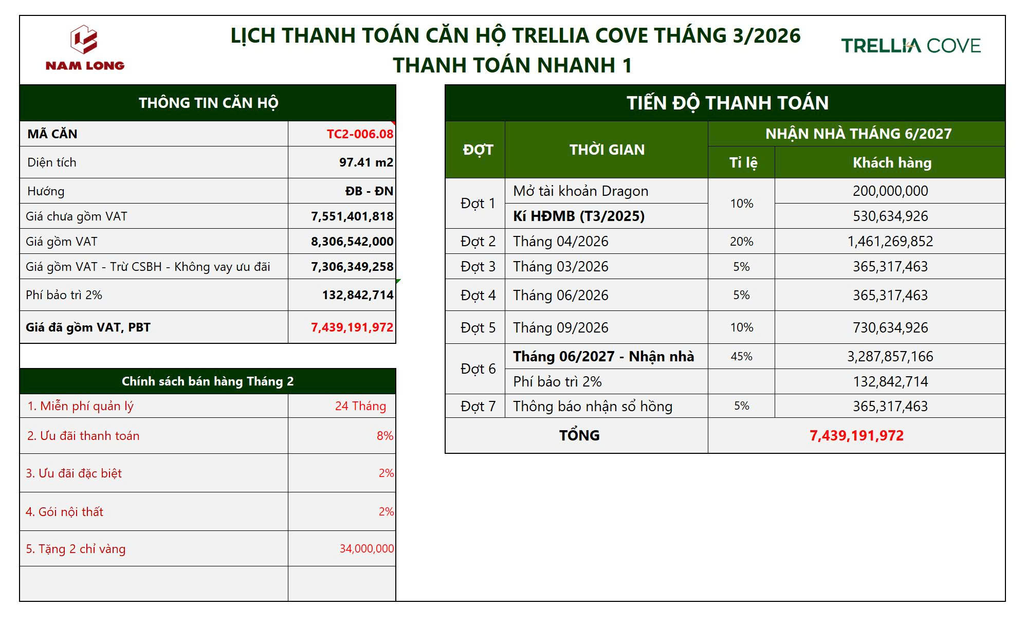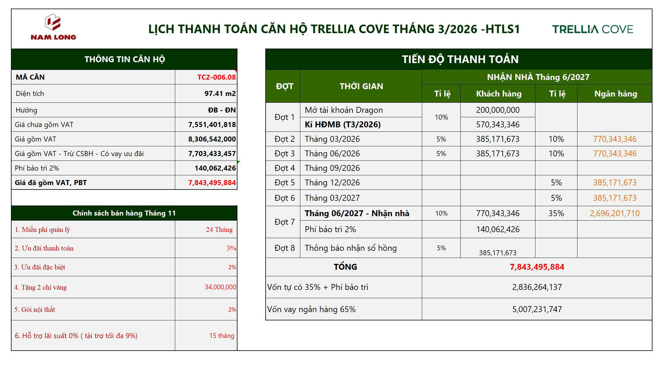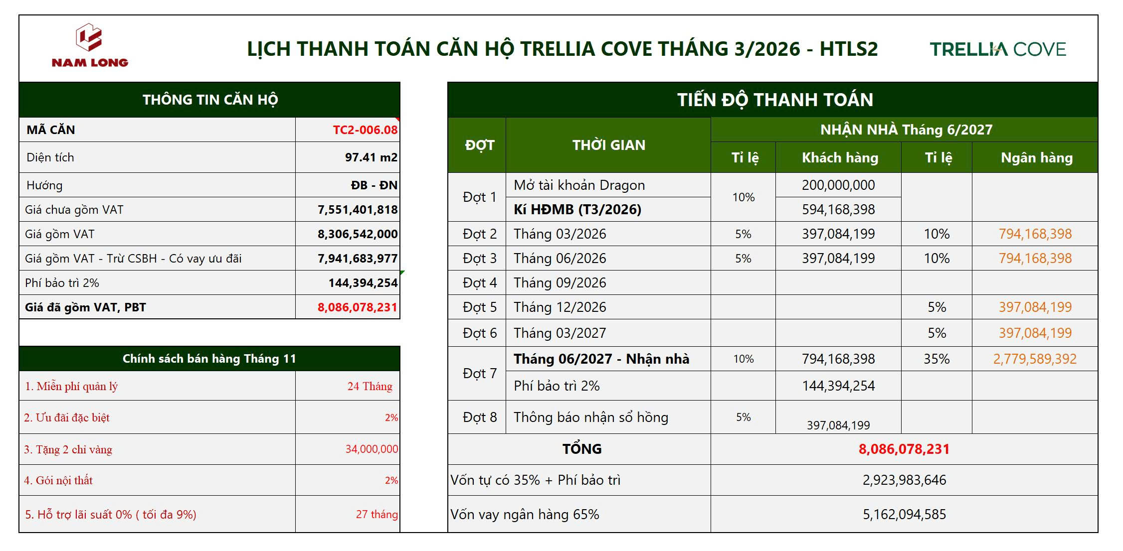 Bảng tính thanh toán CHUẨN căn hộ 3PN 2WC BAN CÔNGBảng tính Thanh toán NHANH 1 căn 3PN 2WC BAN CÔNG ( Số lương giới hạn chỉ 20 suất đầu tiên )Bảng tính Thanh toán NHANH 2 căn 3PN 1WC BAN CÔNG ( Số lượng giới hạn chỉ áp dụng 20 căn đầu tiên)Bảng tính Thanh toán HỖ TRỢ LÃI SUẤT 0%/NĂM ( Thời gian áp dụng 15 tháng )Bảng tính Thanh toán HỖ TRỢ LÃI SUẤT 0%/NĂM (Thời gian áp dụng 27 tháng)